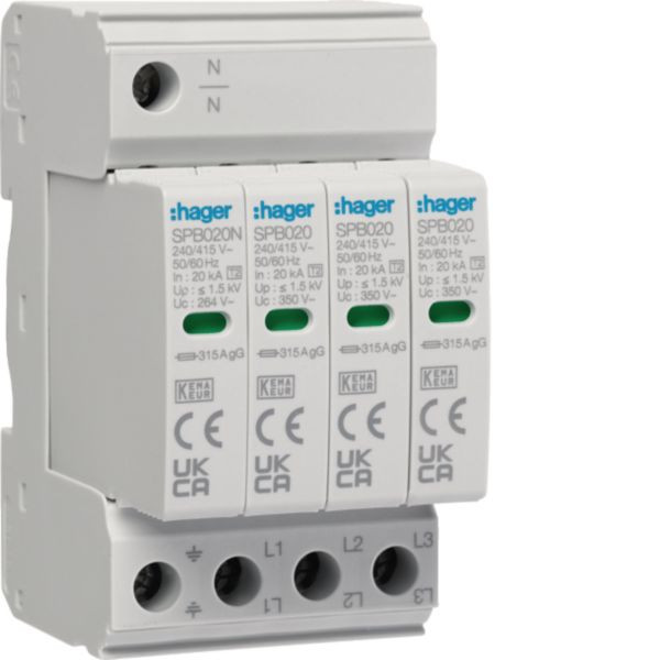 Überspannungsableiter 4P T2 TNS/TT Vorsicherung bis 315A In 20kA Imax 40kA