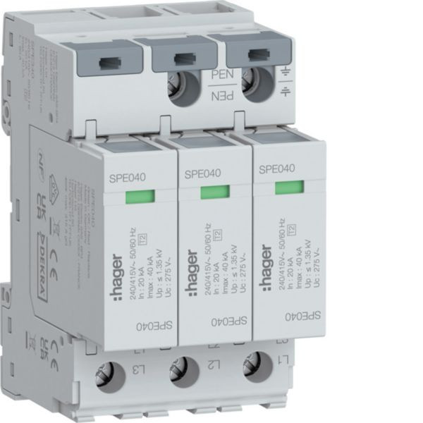 Überspannungsableiter 3P T2 TNC Uc 275V In 20kA Imax 40kA
