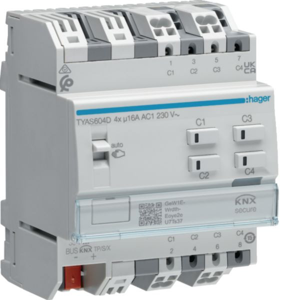 Schalt-/Jalousieaktor 4/2-fach KNX Secure, 16A, C-Last