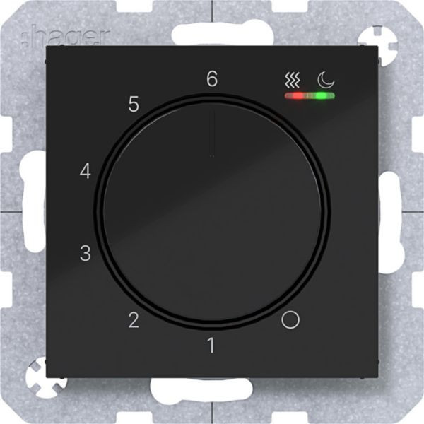 Temp.regler 230V/15W, Dreh-/Druckknopf, Heizen/Kühlen, A.x/C.x, n.schwarz glänz