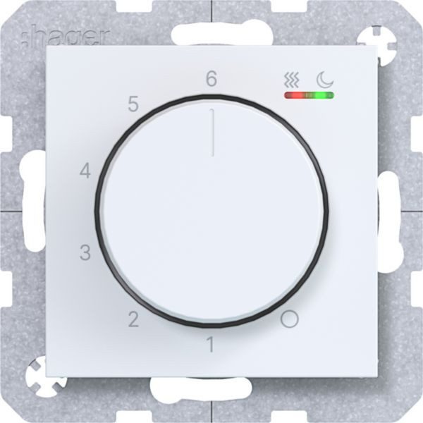 Temp.regler 230V/15W, Dreh-/Druckknopf, Heizen/Kühlen, A.x/C.x, lichtweiß matt