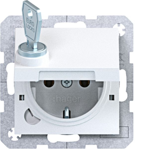 Steckd. SCHUKO m. Klappdeckel, arretierend, Schl., Steckkl., A.x/C.x, liweiß gl