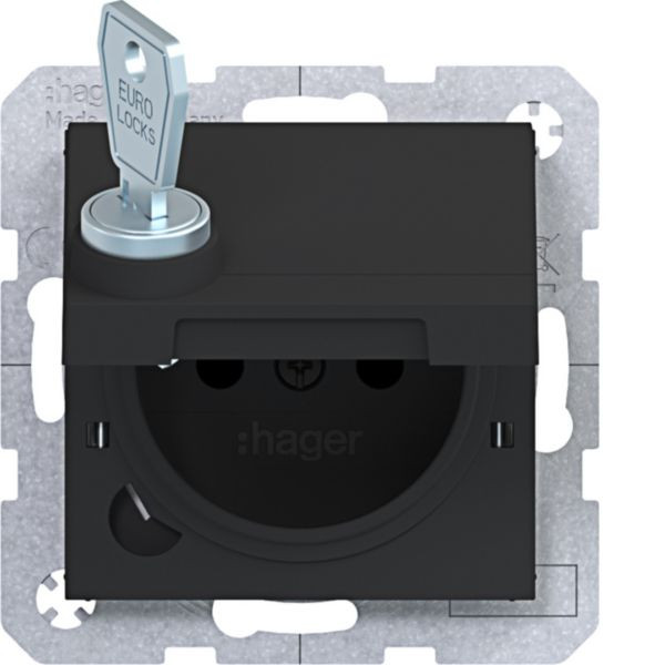 Steckd. m. Schutzk.st. u. Klappd., arret., EHBS, Schloss, SK, A.x/C.x, sw mt