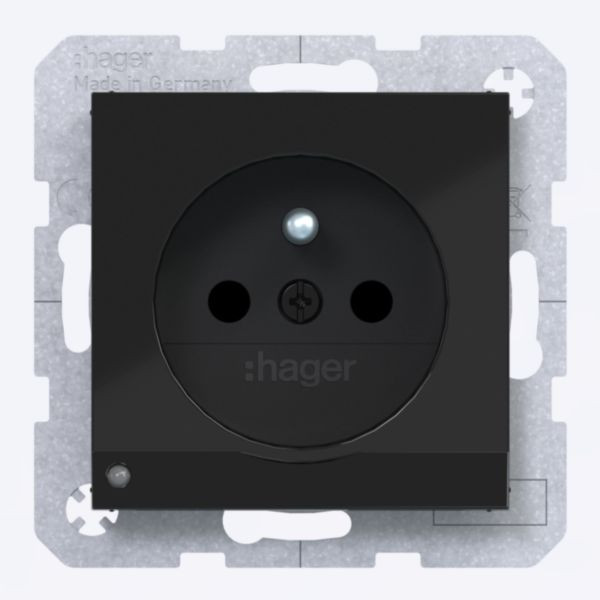 Steckd. m. Schutzk.st. u. LED-O.-Licht, erh. Ber.schutz, SLKL, A.x/C.x, sw gl