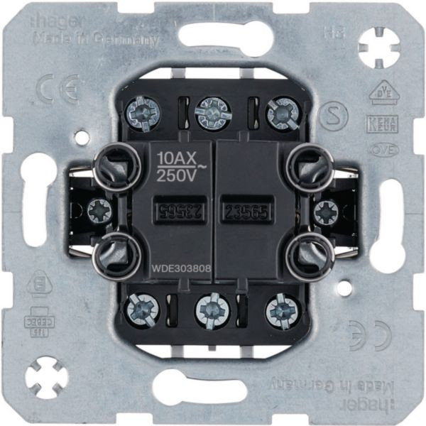 | Kurzbeschreibung | Doppel-Aus/Wechselschalter mit getrennten Eingangsklemmen, 10A/250V, beleuchtbar |