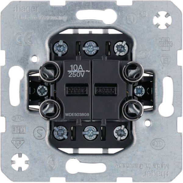Serientaster 2 Wechsler, getrennten Eingangsklemmen, Wipp-Einsatz UP, 10 A
