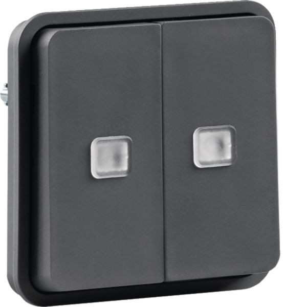 Wippe 2-fach beleuchtet 1Öffner/1Schließer, W.1 IP55, grau