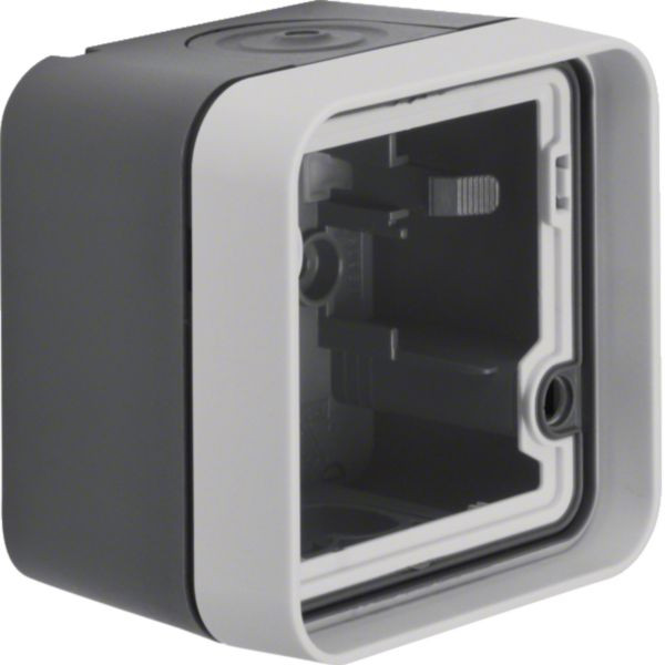 | Kurzbeschreibung | Gehäuseunterteil 1-fach mit Rahmen und Leitungseinführungen Aufputz W.1 grau |