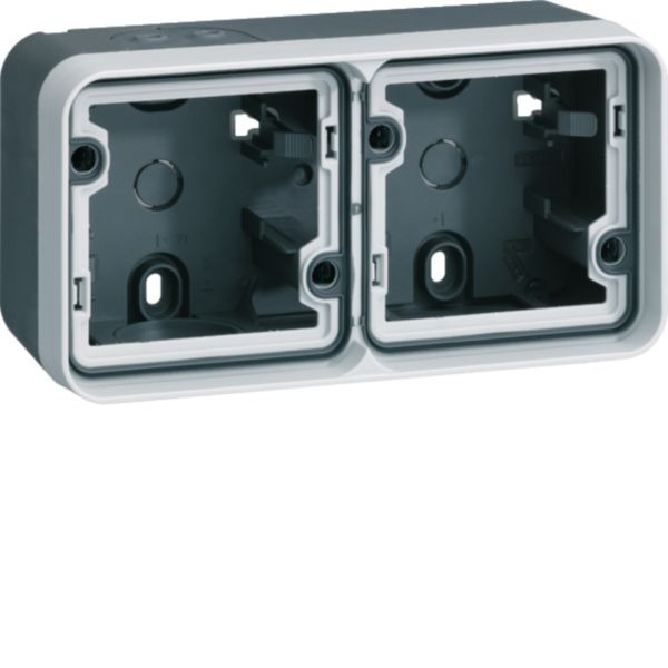 Gehäuseunterteil AP 2fach waagerecht mit Rahmen und Leitungseinf., W.1 IP55,grau