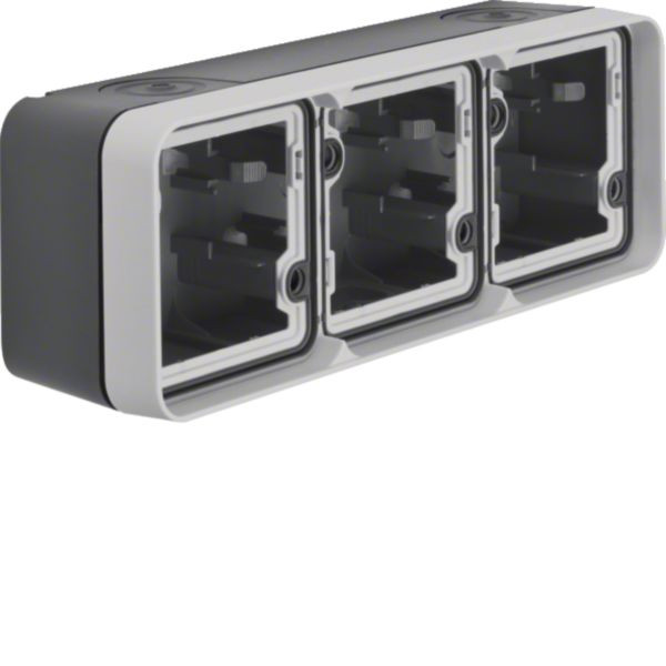 Gehäuseunterteil AP 3fach waager. mit Rahmen und Leitungseinf., W.1 IP55, grau