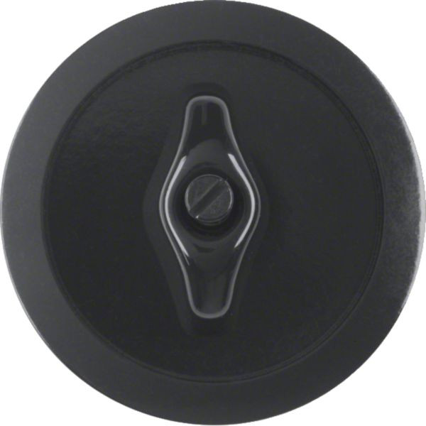 Das Zentralstück mit Knebel der Serie 1930 in schwarz glänzend für Aufputz-Montage bietet eine robuste Konstruktion und elegantes Design. Geeignet für klassische und moderne Innenräume, ermöglicht die einfache Steuerung von Beleuchtung oder anderen Geräten. Material: Hochwertiger Kunststoff.