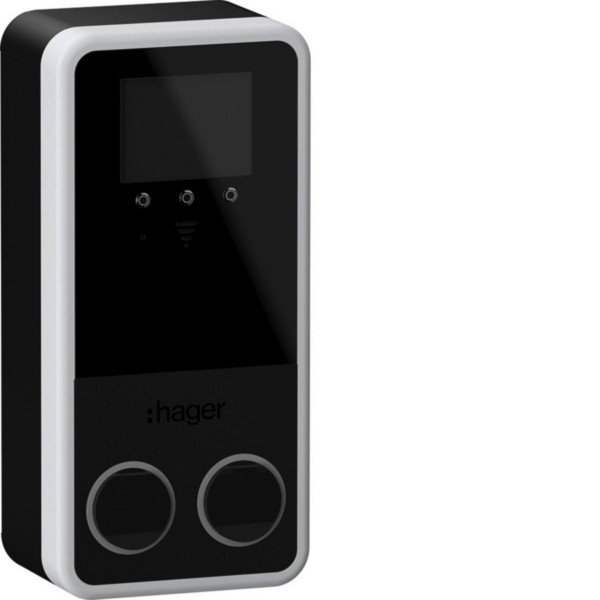 Die witty park 2 Duo-Wallbox vereint zwei Ladepunkte mit je 22 kW Ladeleistung in einer kompakten Wandlösung. Mit Farbdisplay mit Bedientasten, intelligenter Steuerung und robustem Gehäuse ist sie optimal für Gewerbe, Parkhäuser, Tiefgaragen und gewerbliche Parkflächen. Wandmontage spart Platz und ist montagefreundlich durch mitgelieferte Montageplatte.