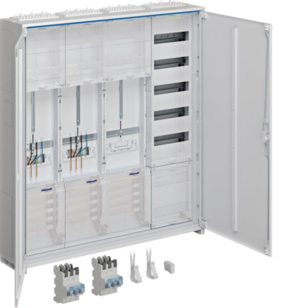 Der Zähler-Komplettschrank, univers Z, mit zwei Zählerplätzen und einer APZ, ist für die Aufputz-Montage konzipiert. Ausgestattet mit einem 3-Punkt System, Selektivem Leitungsschutzschalter (SLS) 50 Ampere und der Schutzart IP Standard 44, garantiert dieser Schrank eine hohe Sicherheit und Zuverlässigkeit in der Energieverteilung. Maße: 1100x1050x205mm. Ideal für den Einsatz in Wohn- und Geschäftsbereichen.