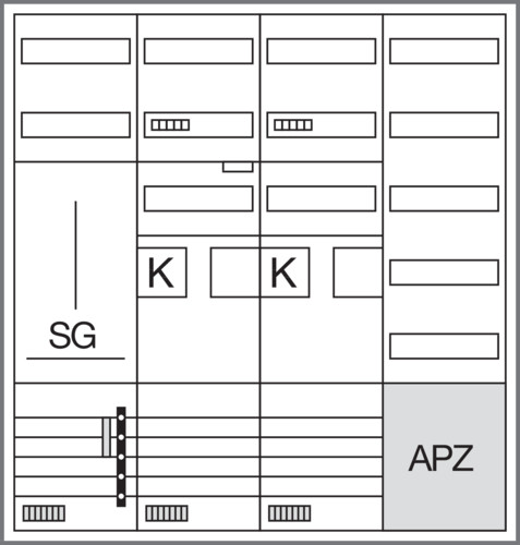 | Kurzbeschreibung | Komplettschrank, univers Z, 2ZP, 1 SG, BKE-I, APZ, VT5, H=1100 mm, 4-feldig |