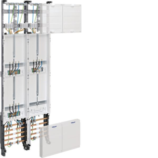 Das Komplettfeld univers Z mit einer Höhe von 1350mm, 3 Zählerplätzen sowie einem Reserveraum, ist für die Energieverteilung in Wohn- und Geschäftsgebäuden konzipiert.Die robuste Konstruktion und die Einhaltung aktueller Sicherheitsnormen gewährleisten eine zuverlässige und sichere Energieverteilung.