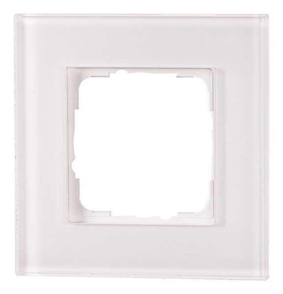 Design-Glasrahmen, weiß, 1-fach, für Einsätze 55x55mm, Echtglas, rückseitig bedruckt, mit weißem Trägerrahmen, außerordentliche Verarbeitungsqualität, UV-beständig, kratzfest, edles, zurückhaltendes Design, Montage in Hoch- und Querformat möglich, passend für Einsätze von folgendem Schalterprogramm: Busch-Jaeger balance SI