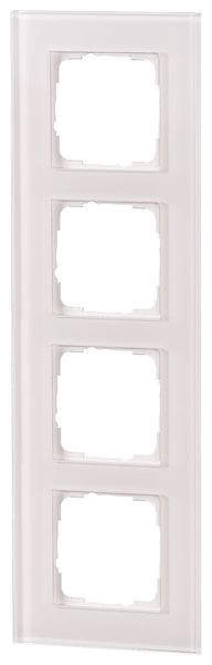 Design-Glasrahmen, weiß, 4-fach, für Einsätze 55x55mm, Echtglas, rückseitig bedruckt, mit weißem Trägerrahmen, außerordentliche Verarbeitungsqualität, UV-beständig, kratzfest, edles, zurückhaltendes Design, Montage in Hoch- und Querformat möglich, passend für Einsätze von folgendem Schalterprogramm: Busch-Jaeger balance SI