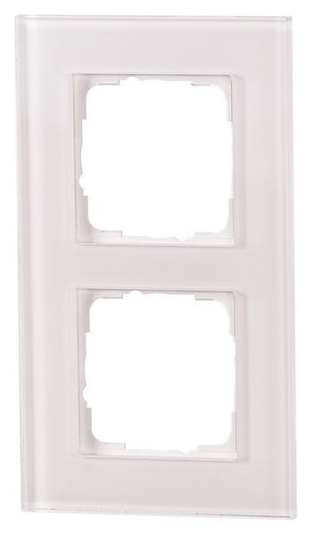 Design-Glasrahmen, weiß, 2-fach, für Einsätze 55x55mm, Echtglas, rückseitig bedruckt, mit weißem Trägerrahmen, außerordentliche Verarbeitungsqualität, UV-beständig, kratzfest, edles, zurückhaltendes Design, Montage in Hoch- und Querformat möglich, passend für Einsätze folgender Schalterprogramme: Jung Serie A und AS, Merten System M, Berker S.1 / B.3 / B.7, Elso Joy