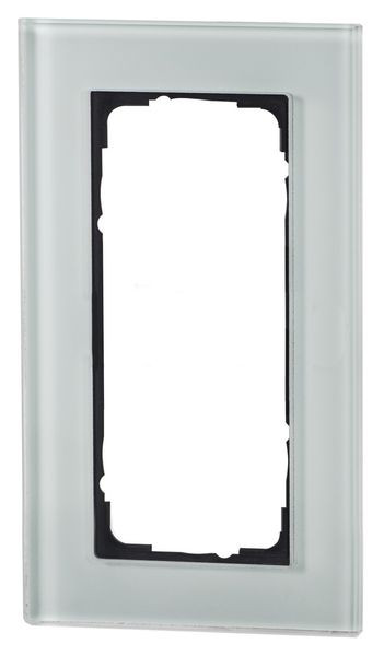 Design-Glasrahmen, mint, 2-fach, ohne Mittelsteg , für Einsätze 55x55mm, Echtglas, rückseitig bedruckt, mit anthrazitfarbigem Trägerrahmen, außerordentliche Verarbeitungsqualität, UV-beständig, kratzfest, edles, zurückhaltendes Design, Montage in Hoch- und Querformat möglich, passend für Einsätze folgender Schalterprogramme: Merten System M
