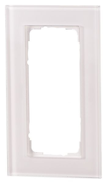 Design-Glasrahmen, weiß, 2-fach, ohne Mittelsteg , für Einsätze 55x55mm, Echtglas, rückseitig bedruckt, mit weißem Trägerrahmen, außerordentliche Verarbeitungsqualität, UV-beständig, kratzfest, edles, zurückhaltendes Design, Montage in Hoch- und Querformat möglich, passend für Einsätze folgender Schalterprogramme: Merten System M