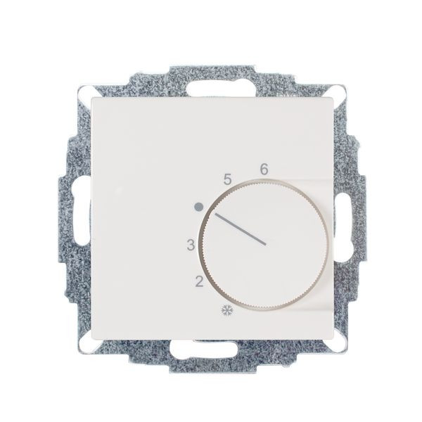 Raumtemperaturregler u.P., 230 V, einschl. Zentralscheibe 55x55mm, ohne Abdeckrahmen, Wechslerkontakt 10(4)A Heizen, 5(2)A Kühlen, für Stellantriebe stromlos geschlossen und stromlos offen, Einstellbereich 5…30°C mit Bereichseinengung, Temperaturabsenkung, Berührungsschutzkappe, Farbe: reinweiß matt, ähnlich RAL9010, passend in folgende Schalterprogramme: Gira System 55, Berker Serie S.1 / B.3 / B.7, Merten Serie System M, Jung Serie A und AS