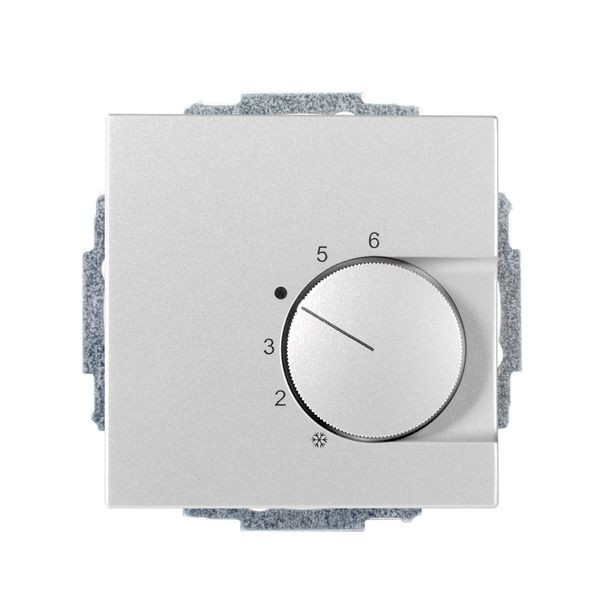 Raumtemperaturregler u.P., 230 V, einschl. Zentralscheibe, ohne Abdeckrahmen, für Stellantriebe stromlos offen und stromlos geschlossen, Triac-Ausgang für max. 5 Stellantriebe (3W elektromechanisch), mit TA-Eingang (3,5°C), Einstellbereich 5…30°C mit Bereichseinengung, mit Berührungsschutzkappe, Anschluss für 230V-Eingangssignal Heizen/Kühlen (Change Over) vom gleichen FI und LS, ohne LED , Farbe: alu glänzend (lackiert), passend in folgende Schalterprogramme: Busch-Jaeger future, future-linear, solo, axcent, carat, dynasty und pur edelstahl. Maximale Leitungslänge für Heizen/Kühlen-Eingang: 100 m. Im Falle größerer Leitungslängen ist u.U. ein Entstör-Kondensator 0,33 Mikrofarad zwischen Steuerleitung Heizen/Kühlen und Neutralleiter erforderlich.