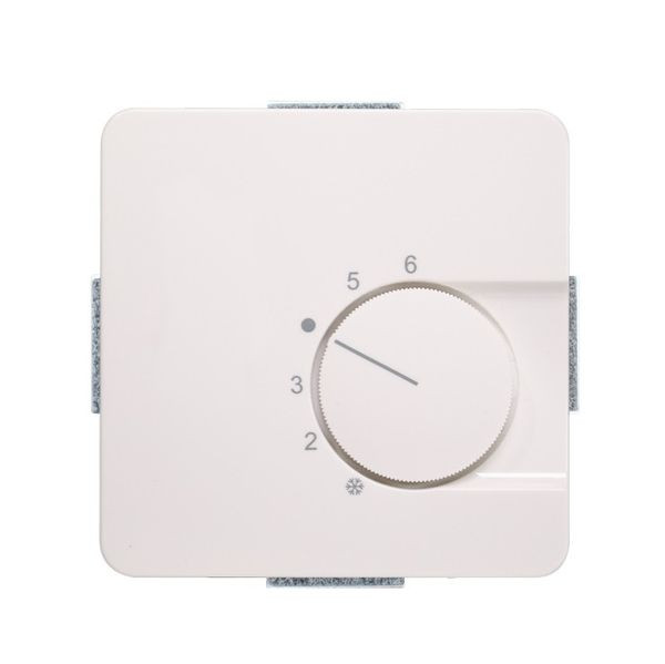 Raumtemperaturregler u.P., 230 V, einschl. Zentralscheibe, ohne Abdeckrahmen, Öffnerkontakt 10(4)A, für Stellantriebe stromlos geschlossen, Einstellbereich 5…30°C mit Bereichseinengung, Temperaturabsenkung, Berührungsschutzkappe, Farbe: alpinweiß glänzend, ähnlich RAL9010, passend in folgende Schalterprogramme: Jung Serie CD 500, CD plus, CD 500 Aufputz