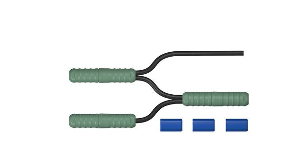 Heizband-T-Abzweig, für die Verbindung von drei Heizbänder der Serien ES-10/18/25(F), einschl. 2,00m fertig angeschlossener Anschlussleitung 3G1,5 mm², Betriebsspannung 230V, max. 16A, Schutzart IP66 (nicht für die Verlegung in der Dachrinne zugelassen), temperaturbeständig -25…+60°C, einschl. drei Endabschlüsse, ohne separaten Abstandhalter
