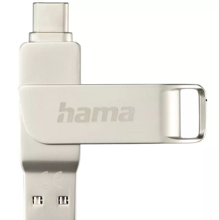 beliebig oft beschreib- und löschbares Wechselspeichermedium mit USB-C-3.0-Anschluss und USB-3.0/USB 3.1(Gen.1)-Anschluss, mit Drehmechanismus, kompakter Stick mit Metall-Gehäuse in edlem Silber