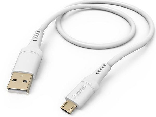 Schnellladekabel "Flexible", USB-A - Micro-USB, 1,5 m, Silikon, Weiß, verbesserter Knickschutz gegen Kabelbruch