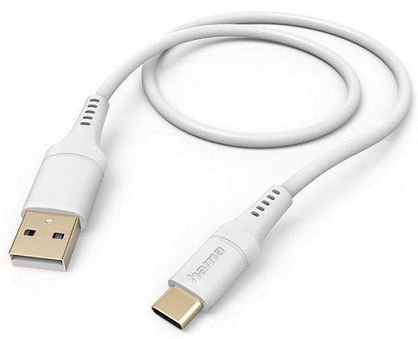 Schnelladekabel "Flexible", USB-A - USB-C, 1,5 m, Silikon, Weiß, Knickschutz gegen Kabelbruch, bis zu 480 Mbit/s für High-Speed-Datenübertragung