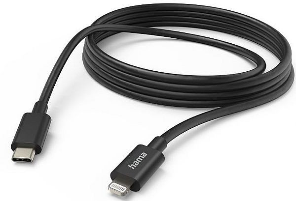 Schnellladekabel, USB-C - Lightning, 3 m, Schwarz, bis zu 480 Mbit/s für High-Speed-Datenübertragung
