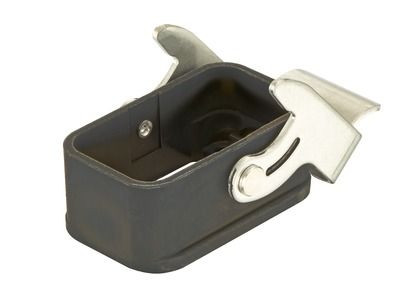 Anbaugehäuse, Baugröße: Han-Compact, Längsbügel, Edelstahl, Werkstoff Gehäuse: Zink-Druckguss, chromatiert, RAL 9005 (tiefschwarz), Werkstoff Dichtung: NBR