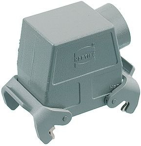 Tüllengehäuse, Baugröße: 32 A, hohe Bauform, Querbügel (tüllenseitig), Polycarbonat (PC), Edelstahl, seitlicher Kabeleingang, 1x Pg 29, Werkstoff Gehäuse: Aluminium-Druckguss, pulverbeschichtet, RAL 7037 (staubgrau)