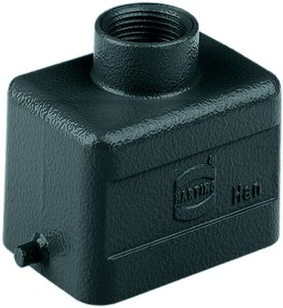 Tüllengehäuse, Baugröße: 6 B, niedrige Bauform, Längsbügel, gerader Kabeleingang, 1x Pg 13,5, Werkstoff Gehäuse: Aluminium-Druckguss, pulverbeschichtet, RAL 9005 (tiefschwarz)