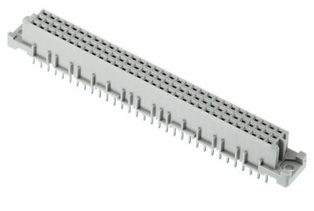 Federleiste, Wellenlötanschluss, Bemessungsstrom: ?2 A, Kontakte: 64, gerade, Kupferlegierung, Edelmetall über Ni steckseitig, Sn über Ni anschlussseitig, Anforderungsstufe: 1, nach IEC 60603-2, Kodierung: Kodierung mit Kontaktverlust, Leiterplattenbefestigung: mit Flansch, Thermoplastischer Formstoff, glasfaserverstärkt, RAL 7035 (lichtgrau)