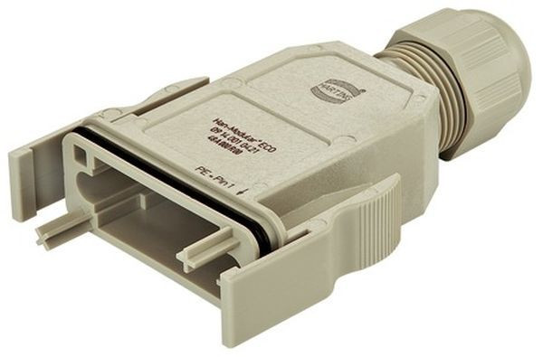 | Kurzbeschreibung | Tüllengehäuse, mit PE-Kennzeichnung (Pin 1 = PE), mit integrierter Kabelverschraubung, Baugröße: Modular ECO, Rastverriegelung, gerader Kabeleingang |