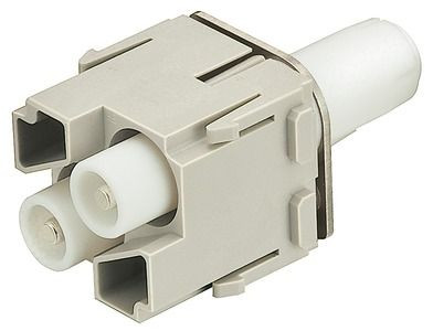Han HV Modul, Doppelmodul, für Han C Crimpkontakte, Crimpanschluss, Stift, Kontakte: 2, Leiterquerschnitt: 1,5...10 mm², Bemessungsstrom: 40 A, Polycarbonat / Teflon (PTFE), RAL 7032 (kieselgrau)