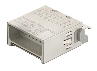 | Kurzbeschreibung | Han Shielded Modul basic plus, Einzelmodul, mit 360° Schirmelement, Crimpanschluss, Stift, Kontakte: 27 + Schirmung |