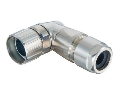 Kabelgehäuse, EMV Version, Baugröße: M23, Schraubverriegelung, gewinkelter Kabeleingang, Werkstoff Gehäuse: Kupferzinklegierung, vernickelt, Schutzart: IP67 im verriegelten Zustand, IP69 / IPX9K nach ISO 20653 im verriegelten Zustand
