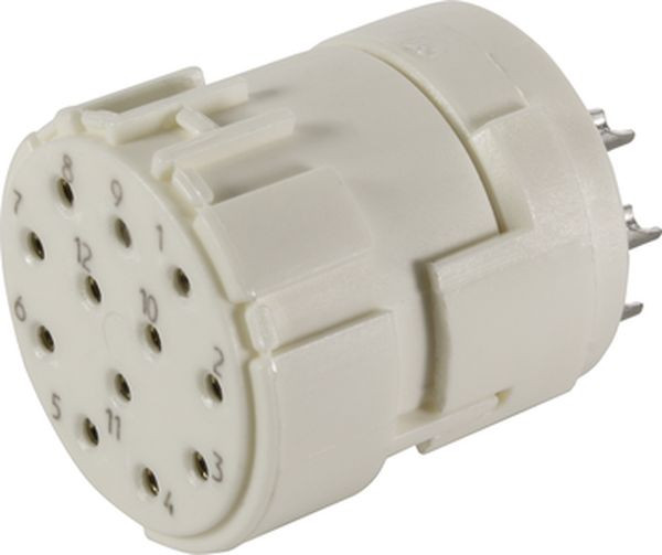 Einsätze, Lötanschluss, Buchse, Polyamid (PA), weiß, Bemessungsstrom: ?8 A, Kontakte: 12, Leiterquerschnitt: 1 mm² max., Kupferlegierung, vergoldet