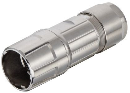 Tüllengehäuse, EMV Version, Baugröße: M23, ComLock-S - Schnellverschluss, gerader Kabeleingang, Werkstoff Gehäuse: Kupferzinklegierung, vernickelt, Schutzart: IP67 im verriegelten Zustand, IP69 / IPX9K nach ISO 20653 im verriegelten Zustand