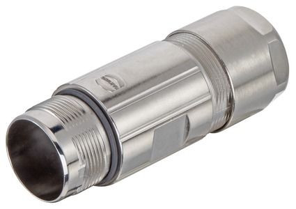 Kupplungsgehäuse, EMV Version, Baugröße: M23, Schraubverriegelung, ComLock - Schnellverschluss, gerader Kabeleingang, Werkstoff Gehäuse: Kupferzinklegierung, vernickelt, Werkstoff Dichtung: NBR, Schutzart: IP67 im verriegelten Zustand, IP69 / IPX9K nach ISO 20653 im verriegelten Zustand