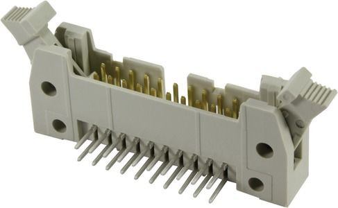 Messerleiste, Wellenlötanschluss, Bemessungsstrom: ?1 A, Kontakte: 14, gewinkelt, Kupferlegierung, Edelmetall über Ni steckseitig, Sn über Ni anschlussseitig, Anforderungsstufe: 2, nach IEC 60603-13, Thermoplastischer Formstoff (PBT), grau