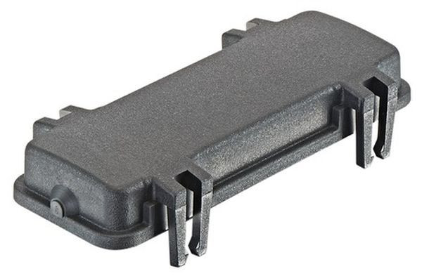 | Kurzbeschreibung | Abdeckkappe, für Tüllengehäuse, Kunststoff, mit Rastclips, Baugröße: 24 B, Querbügel, pulverbeschichtet, RAL 9005 (tiefschwarz) |