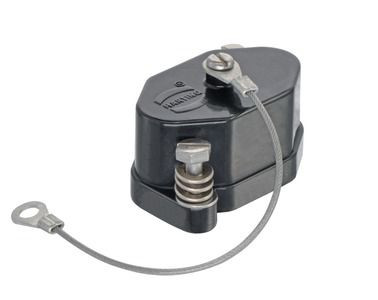 Abdeckkappe, für Anbaugehäuse, für Sockelgehäuse, mit Befestigungsschnur, Baugröße: 3 A, Schraubverriegelung, Edelstahl, Werkstoff Gehäuse: Zink-Druckguss, Schwarzchrom-Beschichtung, RAL 9005 (tiefschwarz), Schutzart: IP65, IP68, IP69 / IPX9K nach ISO 20653