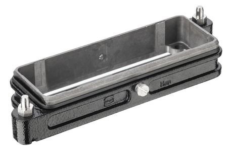 Anbaugehäuse, Baugröße: 24 HPR enlarged, Zentralbügel (tüllenseitig), Werkstoff Gehäuse: Aluminium-Druckguss, korrosionsresistent, pulverbeschichtet, RAL 9005 (tiefschwarz), Werkstoff Dichtung: NBR