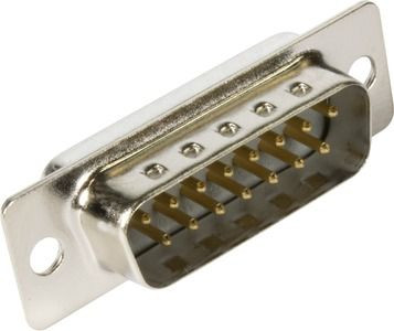 Steckverbinder, Lötkelchanschluss, Bemessungsstrom: 6,5 A, Stift, Baugröße: D-Sub 2, Thermoplastischer Formstoff, glasfaserverstärkt (PBTP), Shell: Stahl, oberflächenveredelt, grau, Kontakte: 15, Leiterquerschnitt: 0,5 mm², Kupferlegierung, Edelmetall über Ni