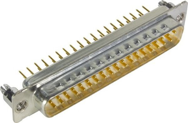 Steckverbinder, Wellenlötanschluss, Bemessungsstrom: ?7,5 A, Stift, Baugröße: D-Sub 4, Thermoplastischer Formstoff, glasfaserverstärkt (PBTP), Shell: Stahl, verzinnt, weiß, Kontakte: 37, Kupferlegierung, Edelmetall über Ni steckseitig, Sn über Ni anschlussseitig