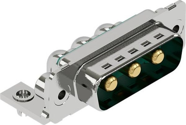 Steckverbinder, Wellenlötanschluss, Stift, Baugröße: D-Sub 2, Thermoplastischer Formstoff, glasfaserverstärkt (PBT), Shell: Stahl, verzinnt, grün, Kontakte: 3, Kupferlegierung, vergoldet steckseitig, Sn über Ni anschlussseitig